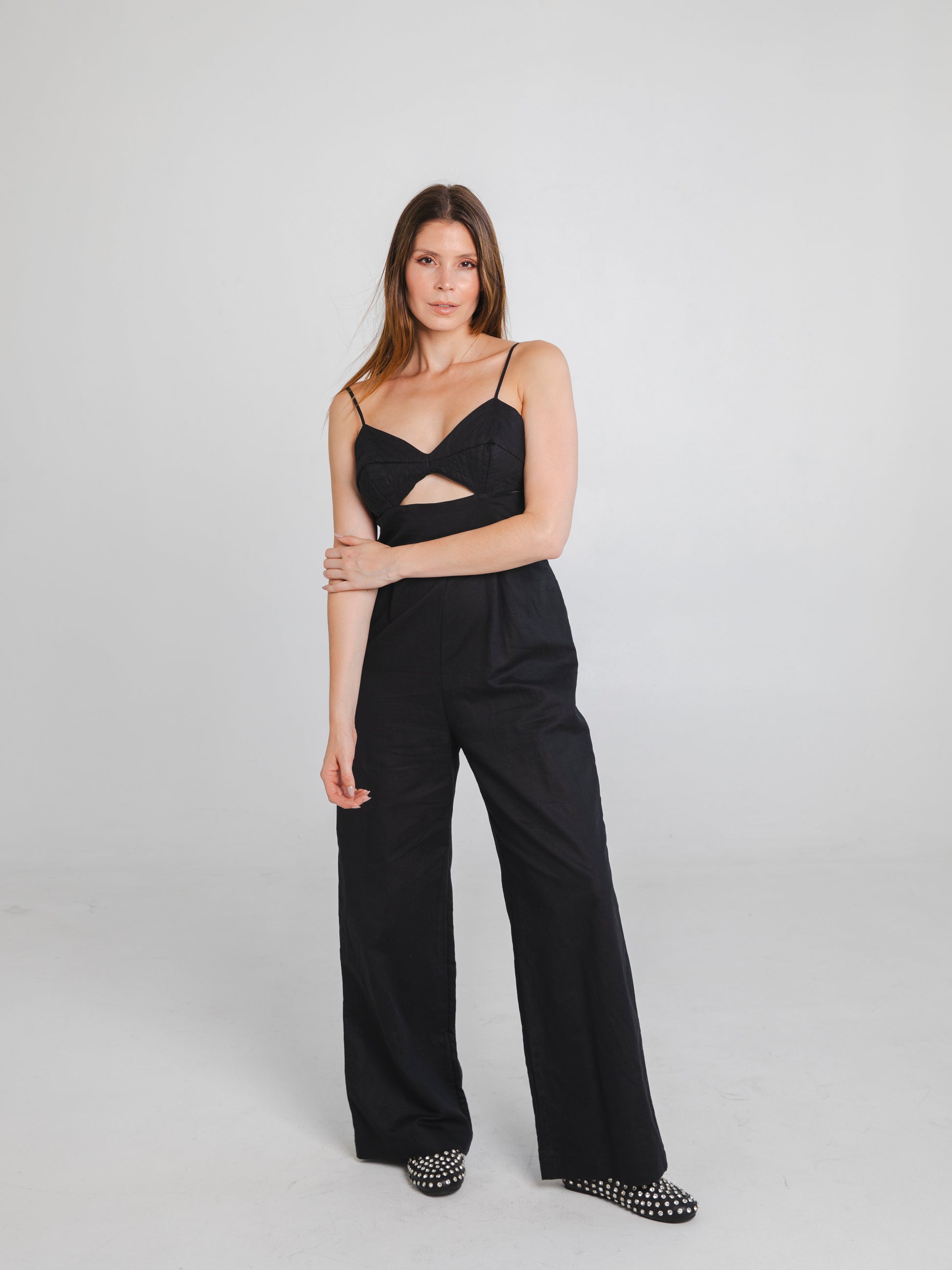Mono de lino con top de algodón capitoneado.