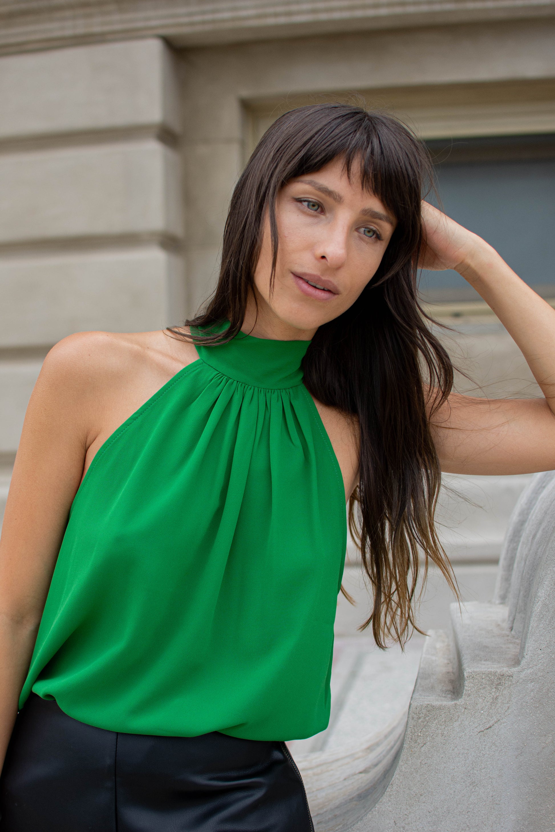 Top gasa cuello halter. Prende con lazo.